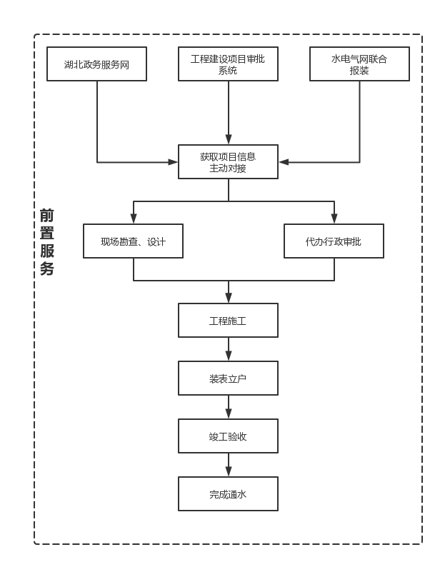 (一)通過政企數(shù)據(jù)共享及通過湖北省工程建設(shè)審批系統(tǒng)、湖北政務(wù)服務(wù)網(wǎng)等渠道,獲取用戶信息,主動對接,主動掌握用戶用水需求,根據(jù)接入地點(diǎn)的不同和用戶需求,確定是否需要在地塊紅線外增設(shè)接入管線,并將后續(xù)相關(guān)事項告知用戶。