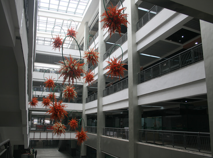 國際商貿(mào)城五區(qū)市場吸納了國際大型商業(yè)中心的先進(jìn)理念,配有電子商務(wù)系統(tǒng)、智能安全系統(tǒng)、物流短駁配送系統(tǒng)、金融服務(wù)系統(tǒng),中央空調(diào)、大型電子顯示屏、寬帶網(wǎng)絡(luò)、數(shù)據(jù)中心、環(huán)繞高架車道、大型停車場、雨水回收器、自動天窗等配套設(shè)施一應(yīng)俱全,堪稱集購物、旅游、休閑為一體的國際性商務(wù)中心,是國內(nèi)現(xiàn)代化、國際化水品最高的全球小商品批發(fā)交易市場。