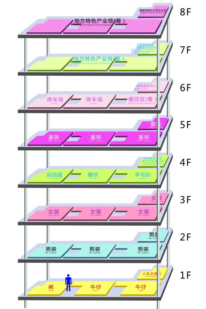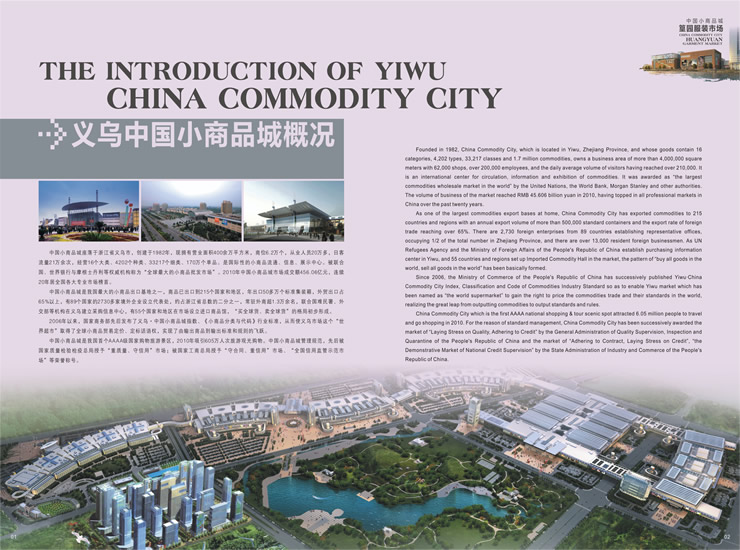 中國小商品城篁園服裝市場地處義烏最為繁華的繡湖商圈,市場總占地117畝,總建筑面積42余萬平方米,總投資14億,余2011年4月份投入使用。篁園服裝市場定位為專業(yè)服裝市場,符合市場國際化、品牌化、多元化的發(fā)展趨勢,有利于提升義烏服裝市場的競爭力,推進(jìn)專業(yè)化、規(guī)模化發(fā)展。 為優(yōu)化行業(yè)布局,強(qiáng)化競爭實(shí)力,突出規(guī)模優(yōu)勢,凸顯市場商機(jī),篁園服裝市場1-5樓布局男裝.皮裝;女裝;童裝;牛仔.褲;睡衣.羊毛衫.運(yùn)動服.襯衫共5個(gè)經(jīng)營類別。